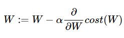 정리하자면, 위 비용 함수는 실제값 y와 예측값 H(x)의 차이가 커지면 cost가 커지고, 실제값 y와 예측값 H(x)의 차이가 작아지면 cost는 작아진다. 이 비용 함수에 대해 경사 하강법을 수행하면서 최적의 가중치 W를 찾아간다.