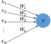 x는 입력값을 의미하며 W는 가중치, y는 출력값이다.