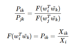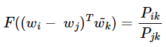 함수 F는 두 단어 사이의 동시 등장 확률의 크기 관계 비 정보를 벡터 공간에 인코딩 하는 것이 목표이다.