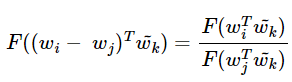 그런데 앞서 작성한 GloVe 식에서는 w_i와 w_j라는 두 벡터의 차이를 F의 입력으로 받았다.