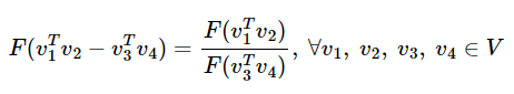 준동형식에서 a와 b가 각각 벡터값이라면 함수 F의 결과값으로는 스칼라 값이 나올 수 없지만, a와 b가 각각 벡터의 내적값이라고 하면 결과 값으로 스칼라 값이 나올 수 있다.