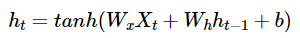output_t = np.tanh(np.dot(Wx,input_t) + np.dot(Wh,hidden_state_t) + b) # Wx * Xt + Wh * Ht-1 + b(bias)