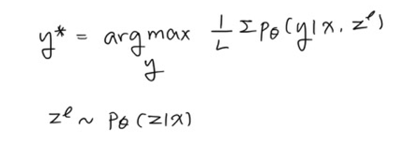그리고 Output y는 p(y|x,z)의 확률분포로부터 생성되게 된다.