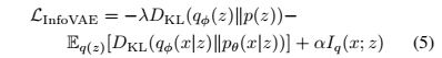2) Mutual information maximization term을 추가함으로써 x와 z 사이의 연관성 문제를 해결