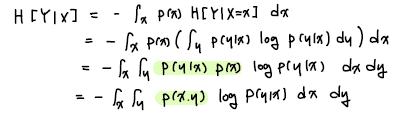 아래 수식에서는 X 사건이 일어났을 때 Y의 불확실성을 나타낸다.