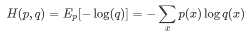 Cross Entropy는 두 확률 분포 p, q가 있을 때 p 대신에 q를 사용하여 p를 설명할 때 필요한 정보량이라고 이해한다.