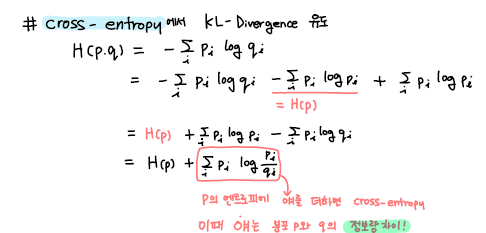 위에서 Cross Entropy를 통해 KL-Divergence를 유도할 수 있다.