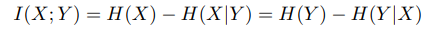 상호 정보량은 Y가 어떠한 값으로 정해졌을 때 X의 불확실성을 의미한다.