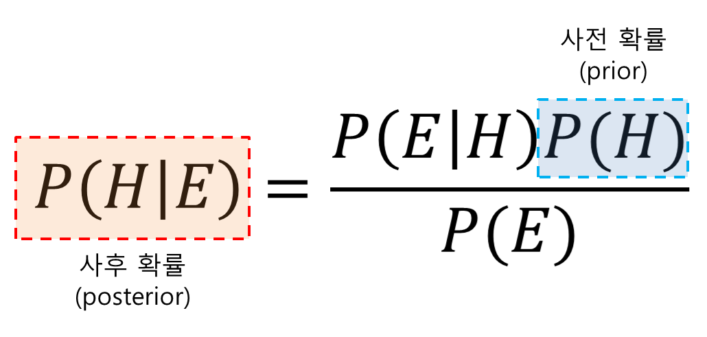 아래 수식에서는 추론 대상 H에 대해서 사전 확률 p(H)가 주어진다.