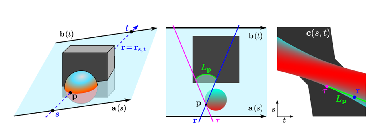 3) 이 Ray당 보이는 rgb값을 s,t에 관한 그림으로 표현한다.