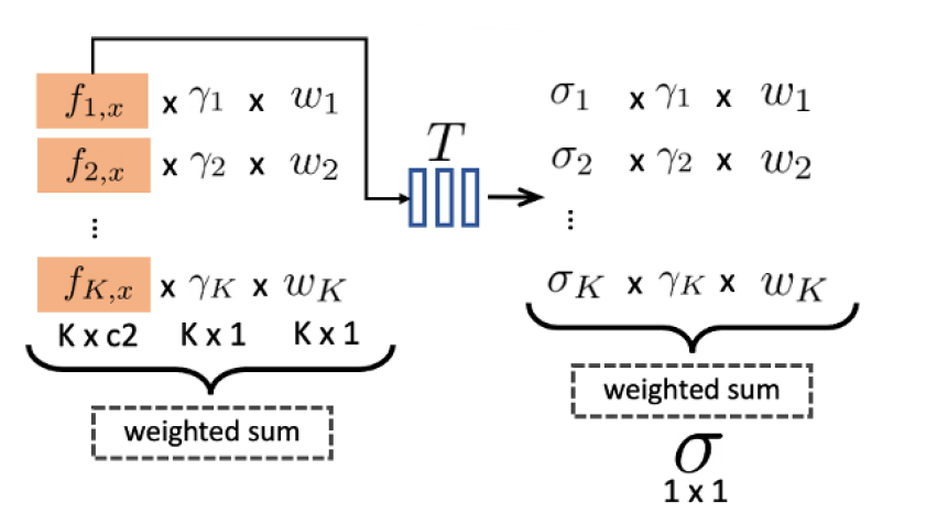 이후 각각의 density도 weighted sum하여 최종적으로 x에 대한 density를 계산한다.