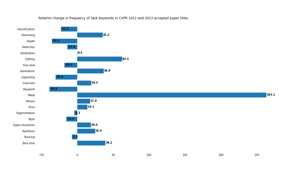 Mask가 전년 대비 263% 증가한 것을 볼 수 있다. Masked auto encoder와 같이 masked에 초점이 많이 맞춰져있다.
