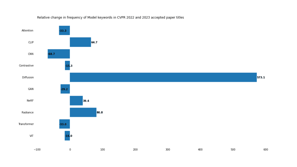 Transformer와 ViT는 2022년에 비해 인기가 하락한 것을 보여주고 있다.