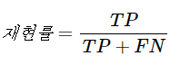 재현률은 실제값이 양성인 데이터의 전체 개수에 대해서 TP의 비율이다.